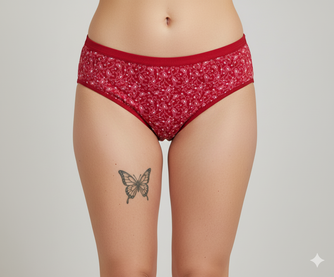 The Mery-O Women’s Printed Panty Collection is designed to bring you ultimate comfort with a touch of elegance. Made from soft, breathable, and stretchable fabric, these panties ensure a snug fit that keeps you fresh and confident all day long. The sweat-absorbing material offers lasting comfort, while the durable elastic provides flexibility without losing shape. Featuring beautiful printed designs in three attractive colors – navy blue, black, and red – this collection is perfect for women who want both style and everyday comfort.